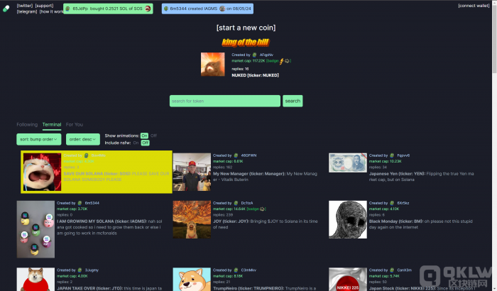 在Pump.fun上僅需0.02 SOL 【按SOL最高價(jià)格190/SOL,0.02不過(guò)3.8元RMB】,即可發(fā)幣。前有卡戴珊老爹變性人發(fā)幣猛漲160倍,在巨大的財(cái)富效應(yīng)下,這種低廉的發(fā)幣費(fèi)用注定是一場(chǎng)小白的狂歡。