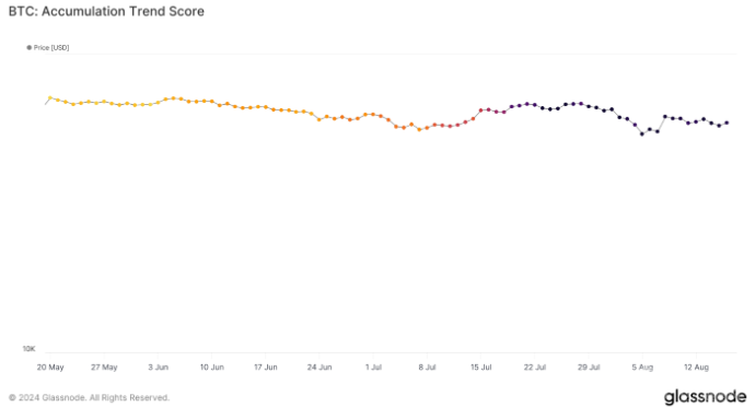 Glassnode的數(shù)據(jù)顯示,目前的累積傾向得分為0.94,接近1的值表示投資者對(duì)Bitcoin的購(gòu)買興趣較高。這一數(shù)據(jù)支持了Bitcoin需求增加的趨勢(shì),可能為第四季度的價(jià)格上漲奠定了基礎(chǔ)。