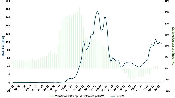 圖11:2020年減半前后美國貨幣供應(yīng)量(M2)和Bitcoin價(jià)格