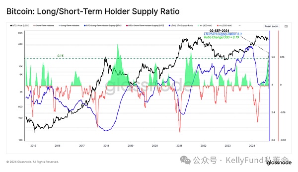 新投資者持有的資產比例未達到之前幣價突破歷史新高時的峰值,這表明2024年的峰值可能更像是出現于2019年的那種中期高點,而非出現于2017年和2021年的宏觀高點。