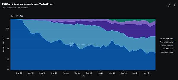 本文將從三個方面進行探討。首先,我們將概述三個結構性趨勢,這些趨勢將繼續促使協議層和應用層商品化。其次,我們將探討錢包如何通過多種途徑利用其與最終用戶的近距離關系來實現盈利,包括訂單流支付(PFOF)和銷售應用的分銷即服務(DaaS)。最后,我們將探討為什么兩個替代性的前端「Jupiter」和「Infinex」,有可能在爭奪「最終用戶」的競爭中打敗錢包。走向更精簡的協議和應用
