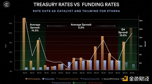 在這種情況下,Ethena會扮演利率套利工具的角色,促使DeFi、CeFi和傳統金融之間的資本流動和利率市場融合。