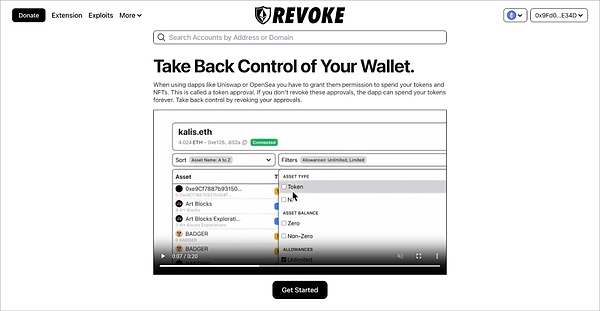 值得注意的是,這個釣魚網站的頁面設計和 Revoke的界面風格、Logo極為相似,容易讓用戶誤以為是正規授權撤銷平臺,從而降低警惕,增加上當受騙的風險。下圖為Revoke的官網界面: