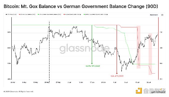 在比較過去兩個(gè)月從Mt.Gox到其他大型實(shí)體的分配規(guī)模時(shí),我們可以看到,這些分配的規(guī)模已經(jīng)超過ETF流入、面向礦工的發(fā)行規(guī)模,以及德國政府的賣方。